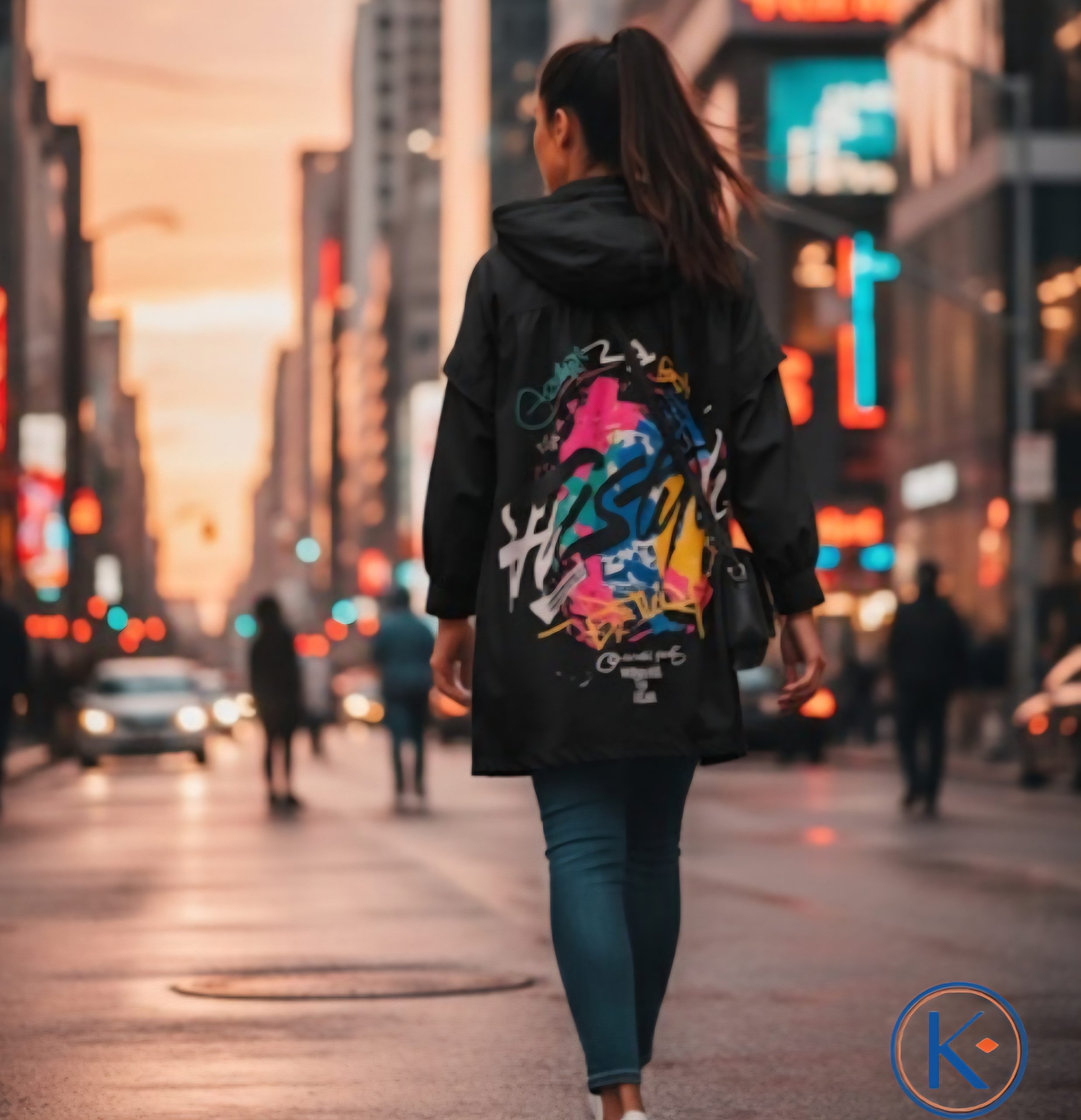 Los dos bolsillos laterales ofrecen practicidad, mientras que el estampado serigrafiado colorido en la espalda y el detalle decorativo en el frente aportan un aire creativo y contemporáneo, ideal para expresar tu personalidad.