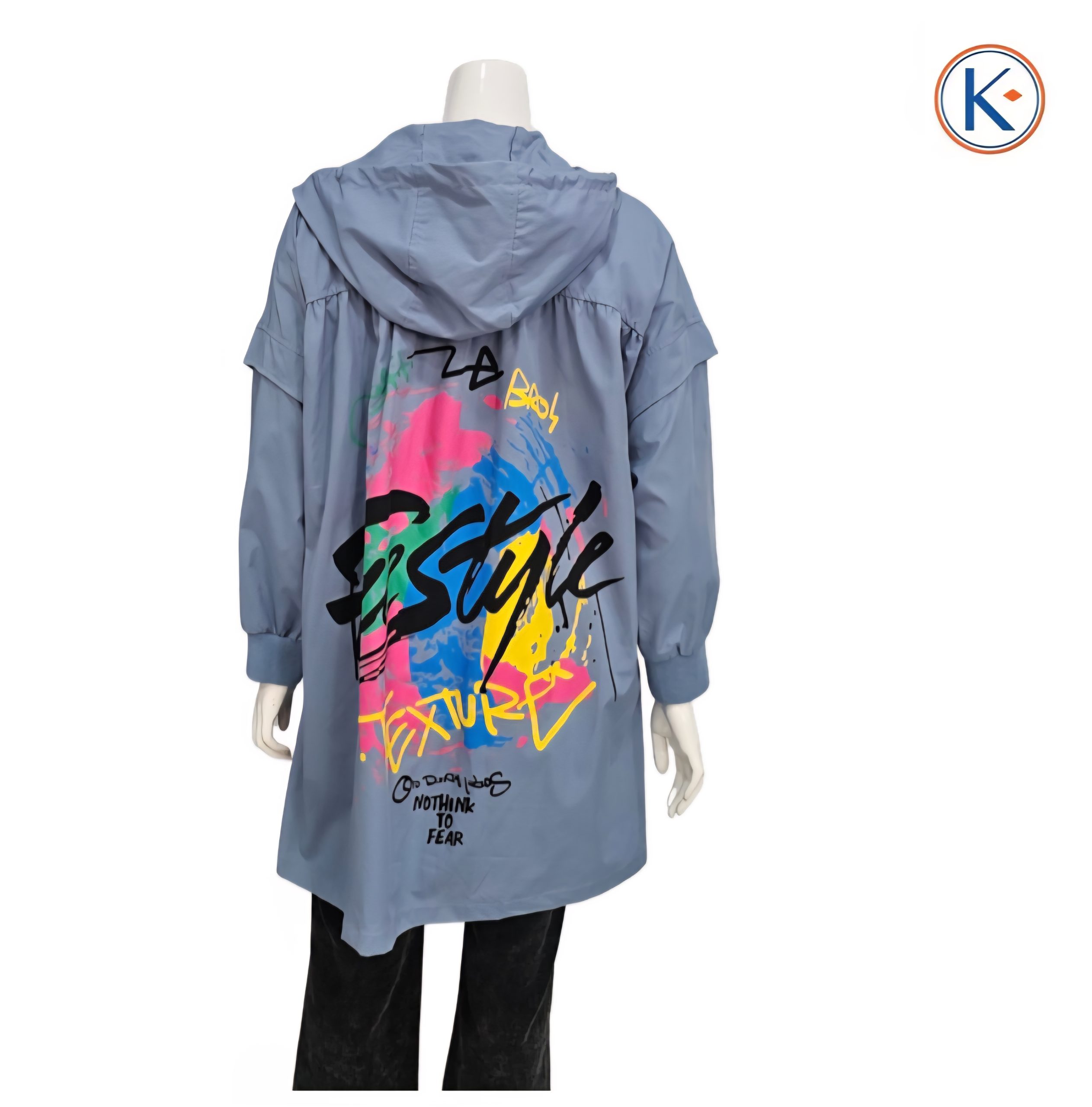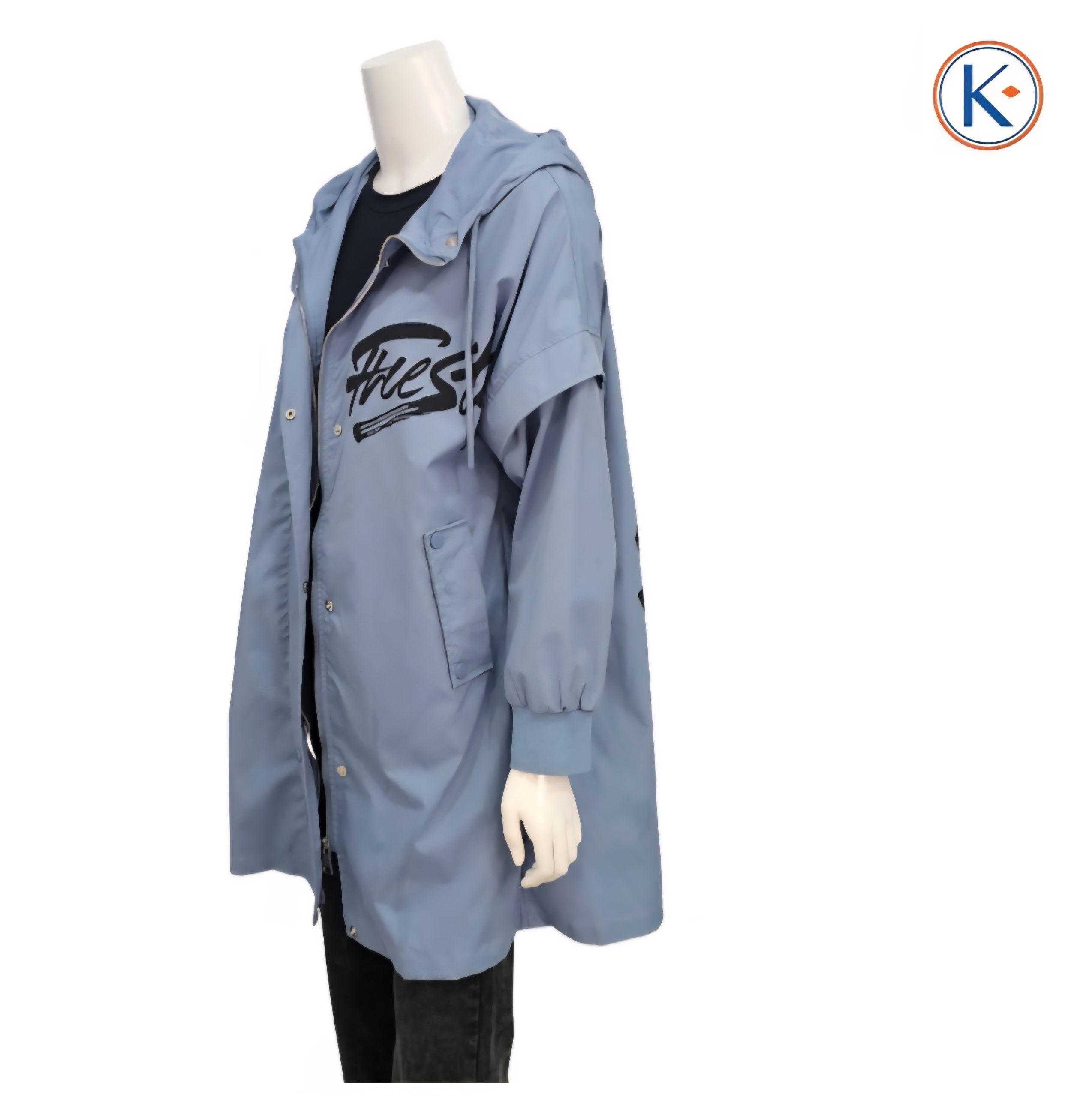 Confeccionada en tejido gabardina 100% poliéster, esta prenda presenta una silueta amplia y favorecedora, perfecta para quienes buscan libertad de movimiento y estilo. La capucha funcional y el doble cierre de cremallera con corchetes garantizan protección y un ajuste seguro.