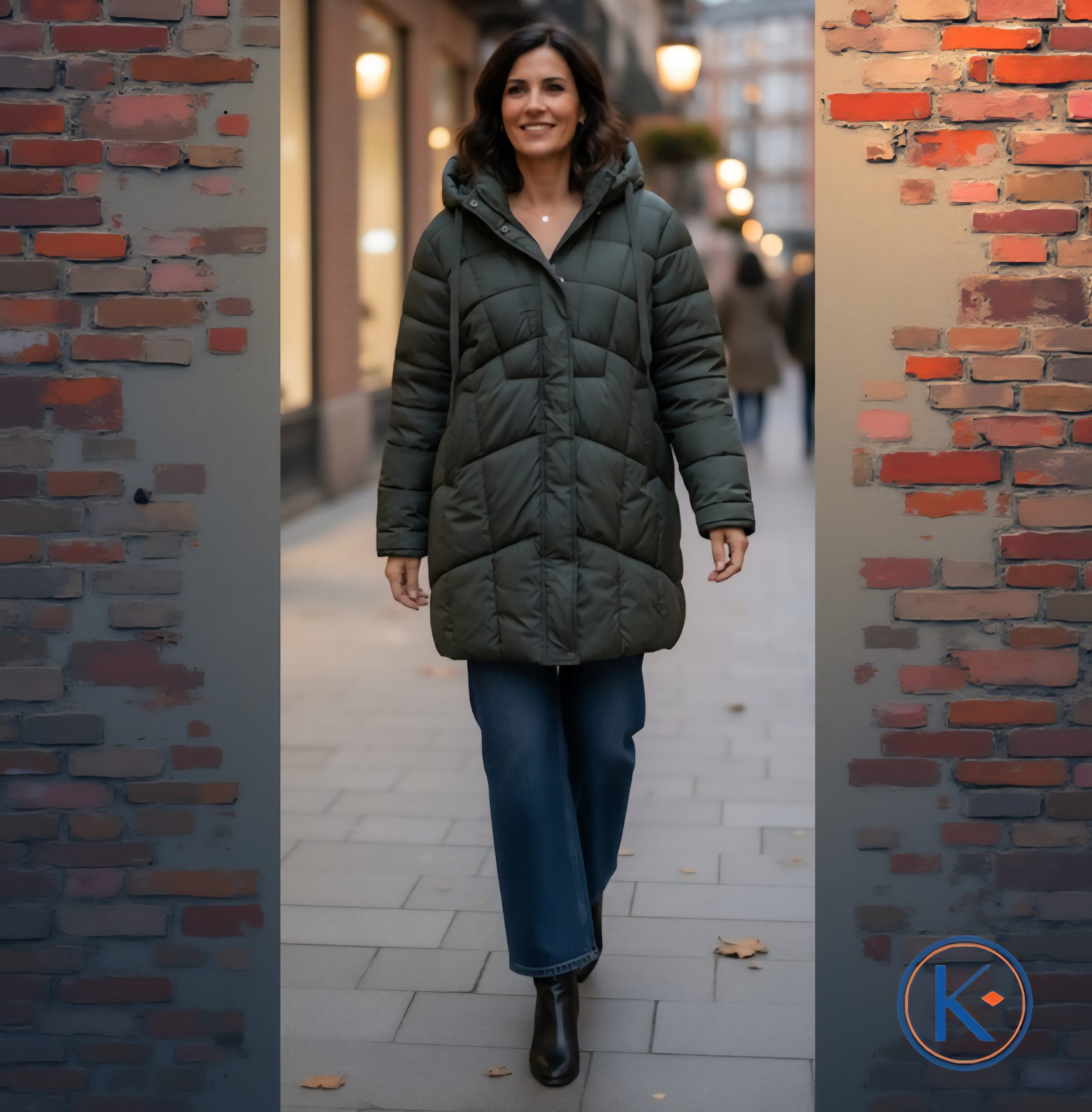 Su corte amplio se adapta a la silueta, ofreciendo libertad de movimiento sin perder forma. Los detalles acolchados aportan calidez y estilo, mientras que el acabado en color verde combina fácilmente con jeans, pantalones casuales o de vestir.